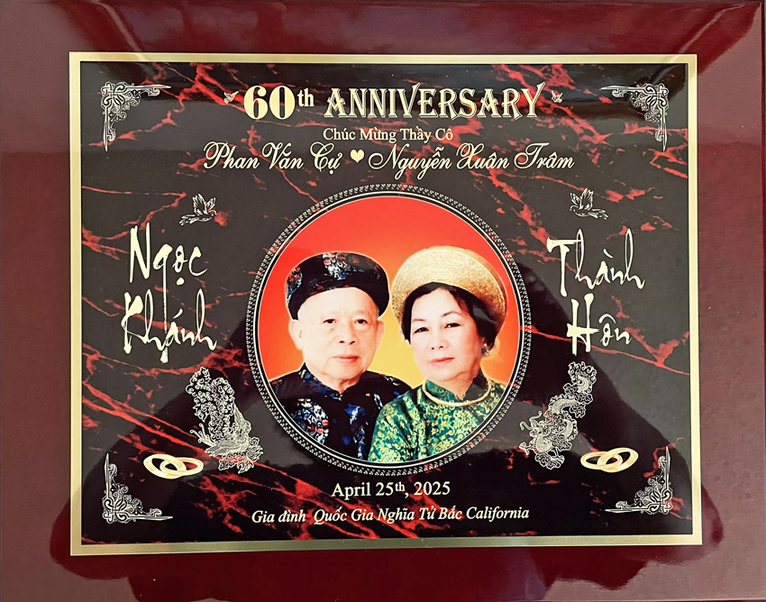 - Vào trưa ngày 26 tháng 4 năm 2025, anh chị em QGNT miền bắc California đã đến nhà hàng Dynasty tại thành phố San Jose để tham dự tiệc mừng “Kỷ Niệm 60 Năm Thành Hôn” của thầy cô Phan Văn Cự.
