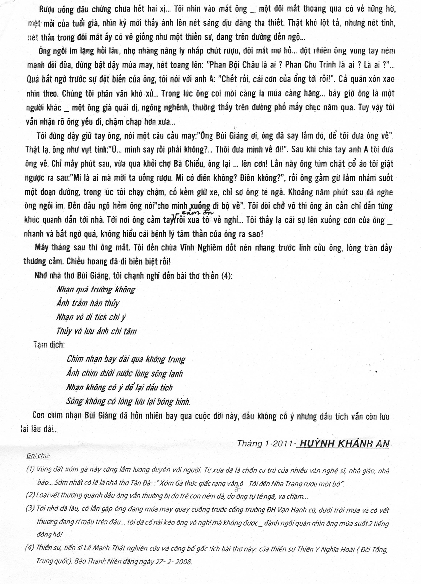 Tôi đã đi dự hầu hết các cuộc họp mặt hàng năm của trường B.K.T.C Phú Thọ. Ngôi trường mà tôi rất tự hào là mình đã mang dấu ấn sâu đậm của nó, trong suốt cuộc đời. Dù về sau có học ở vài nơi khác, cũng chỉ là làm sáng tỏ hơn dấu ấn đó mà thôi. Đến dự họp mặt, được gặp lại thầy xưa, bạn cũ, lớp trước, lớp sau....Tôi đã được gặp lại tôi, trong quá khứ tưởng đã quá xa mờ...Thật là một niềm hạnh phúc đầm ấm, thiết tha khó tả. Và cũng rất ngậm ngùi khi nhìn hàng ghế của quý thầy mỗi năm thưa vắng. Rồi những gương mặt già mà tươi rói của lớp đàn anh, mới hôm nào tay bắt mặt mừng...vậy mà nay cũng đã lần lượt ra đi...Người xưa đâu ?