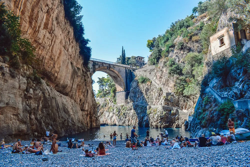 Fiordo di Furore (chụp từ trên cầu) là một bãi biển tuyệt đẹp được bao quanh bởi những vách đá cao nối liền với nhau bằng một cây cầu, tạo nên một địa điểm vô cùng đẹp như tranh vẽ. Nơi đây rất được ưa chuộng cho các du khách tắm biển và cho các tour du thuyền.