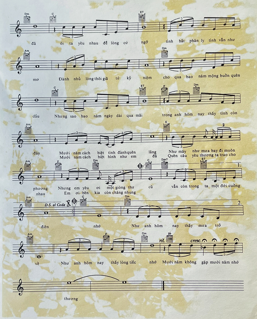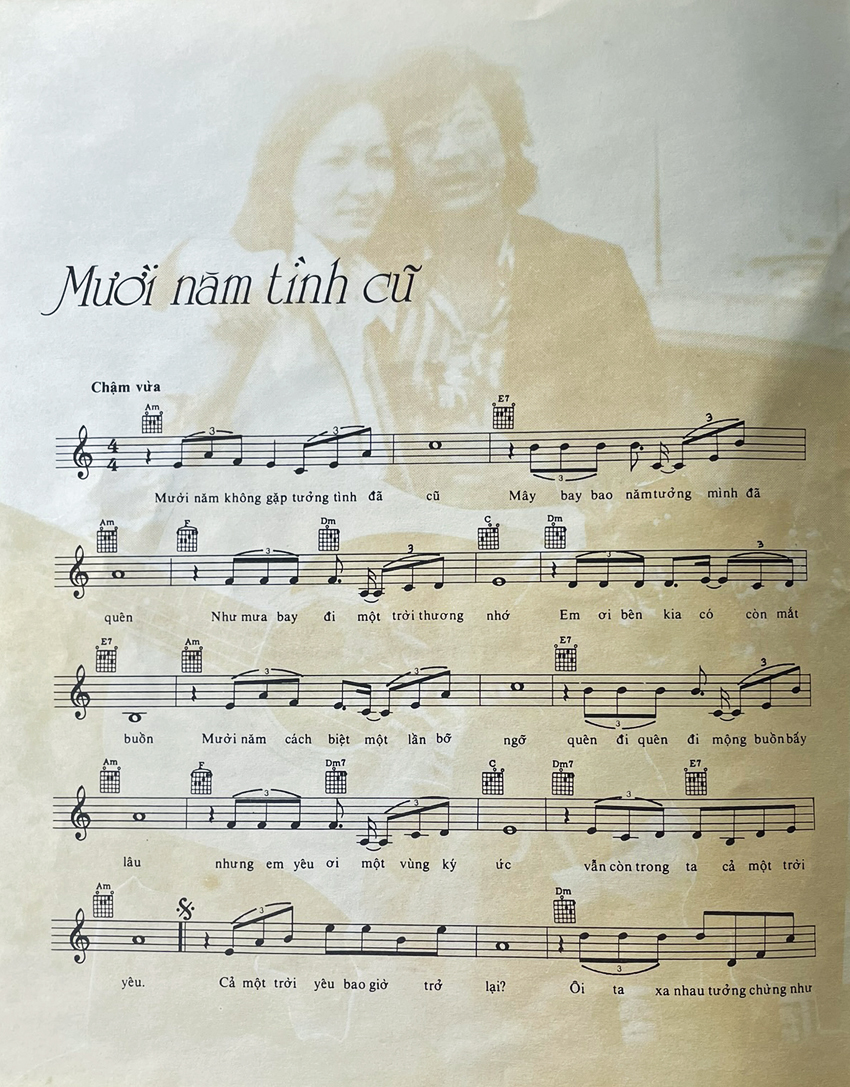 - Một buổi tối giữa năm 1985. Tấm ảnh cũ rơi ra từ mớ giấy tờ hỗn độn. Nhìn tấm ảnh, bất chợt tôi hát thầm trong xúc động : “Mười năm không gặp tưởng tình đã cũ…” Rồi hoàn tất bài nhạc trong thời gian rất ngắn, có lẽ không đến nửa tiếng đồng hồ.