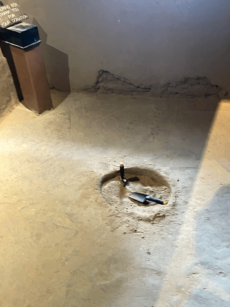 Cái lỗ chứa cát này người ta nói có thể chữa được nhiều bệnh tật. Khách hành hương thường dùng cát này sát vào người chỗ nào cần. Người ta cũng lấy cát mang về nhà.