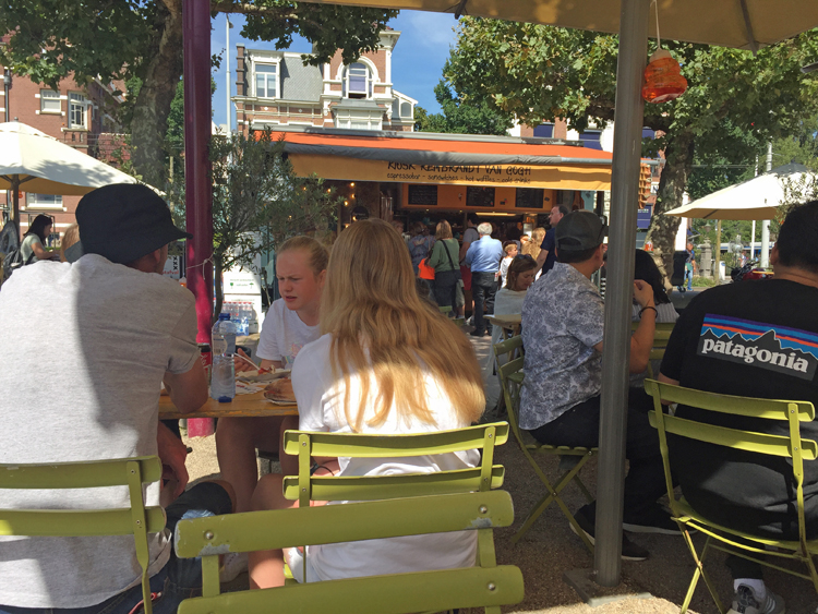 Hình quán bán cà phê, nước ngọt, món ăn nhẹ...có tên là KIOSK REMBRANDT VAN GOGH; hai nhà họa sỹ nổi tiếng thế giới.