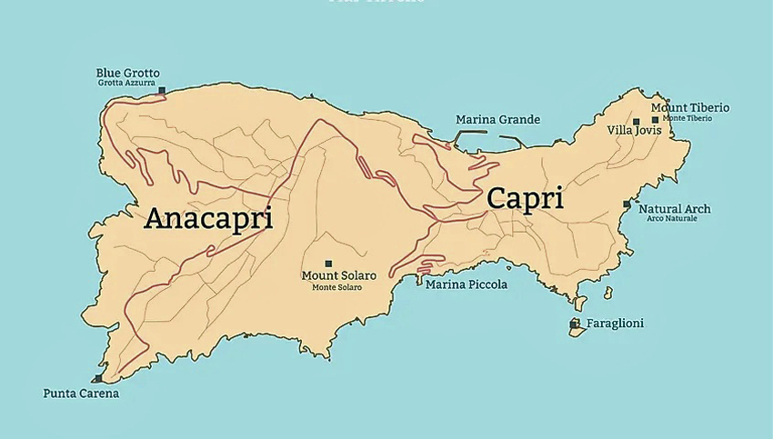 Các thị trấn chính: Capri (thị trấn phía trên) và Anacapri (nằm cao hơn trên đảo)
