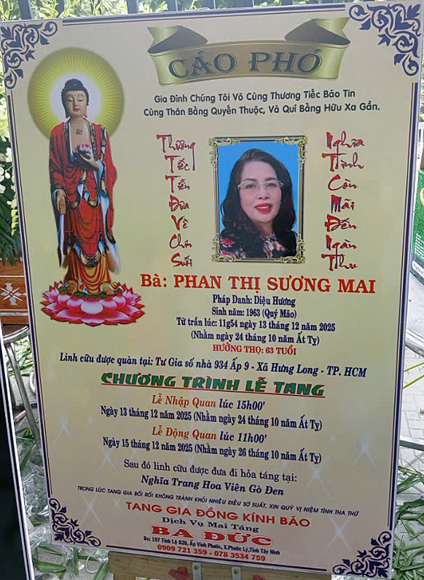 Xin đồng cầu nguyện cho hương linh của chị Sương Mai sớm về Cõi Phật.