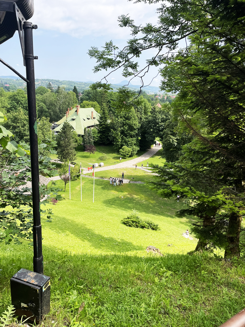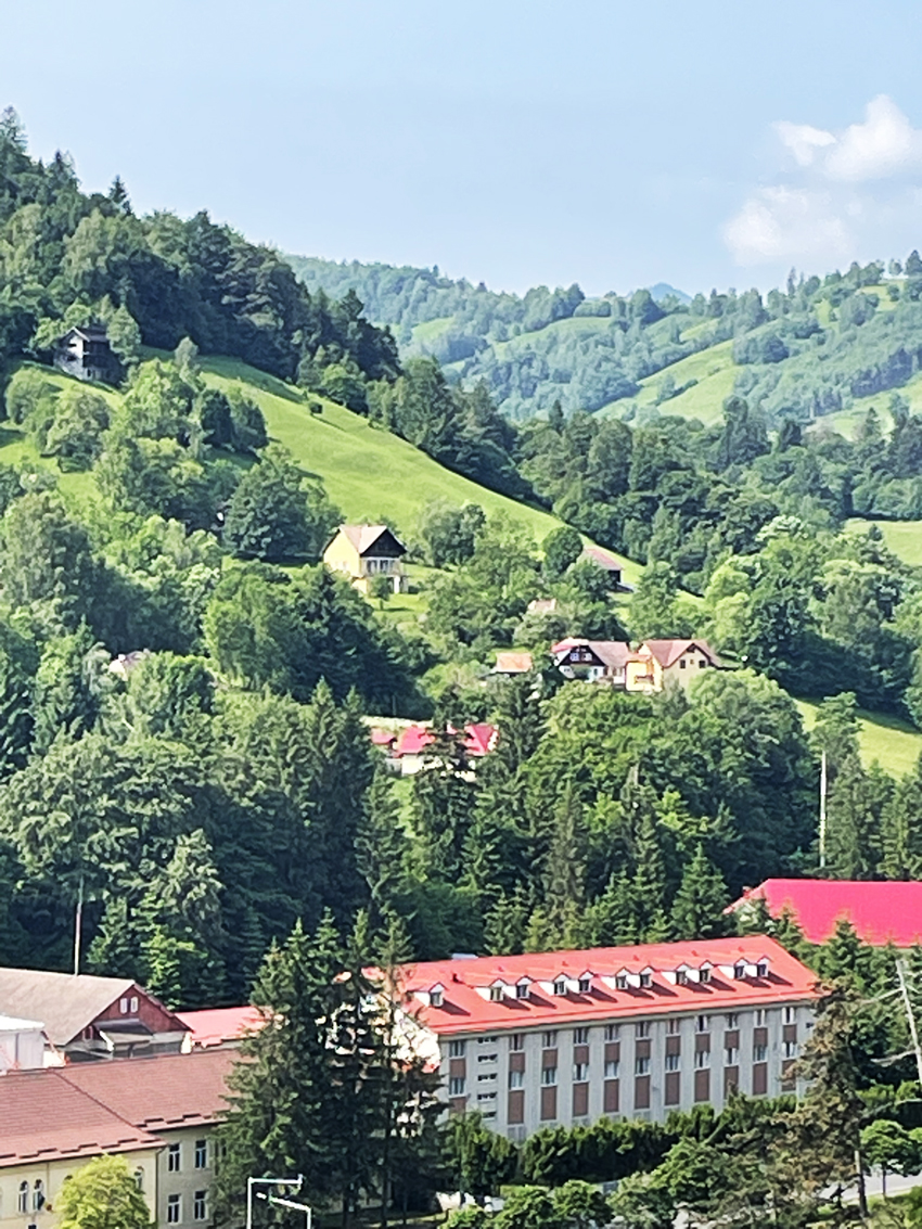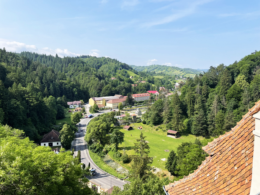 Từ lâu đài, du khách có thể ngắm toàn cảnh dãy núi Carpathian xung quanh.