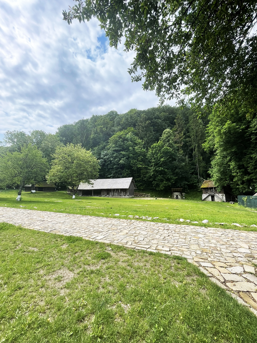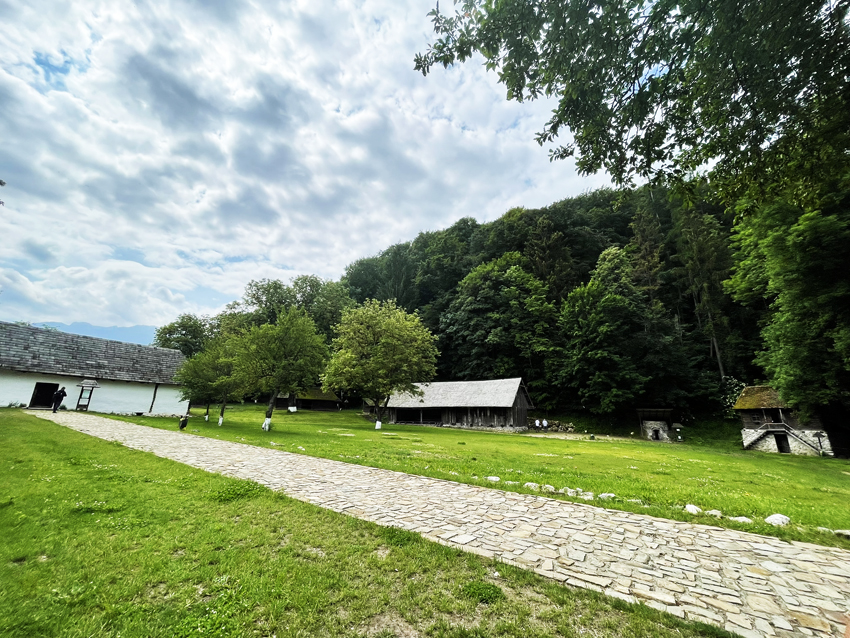 Bên ngoài là một bảo tàng làng nhỏ trưng bày nhà cửa và đồ thủ công truyền thống của Romania - các hình dưới