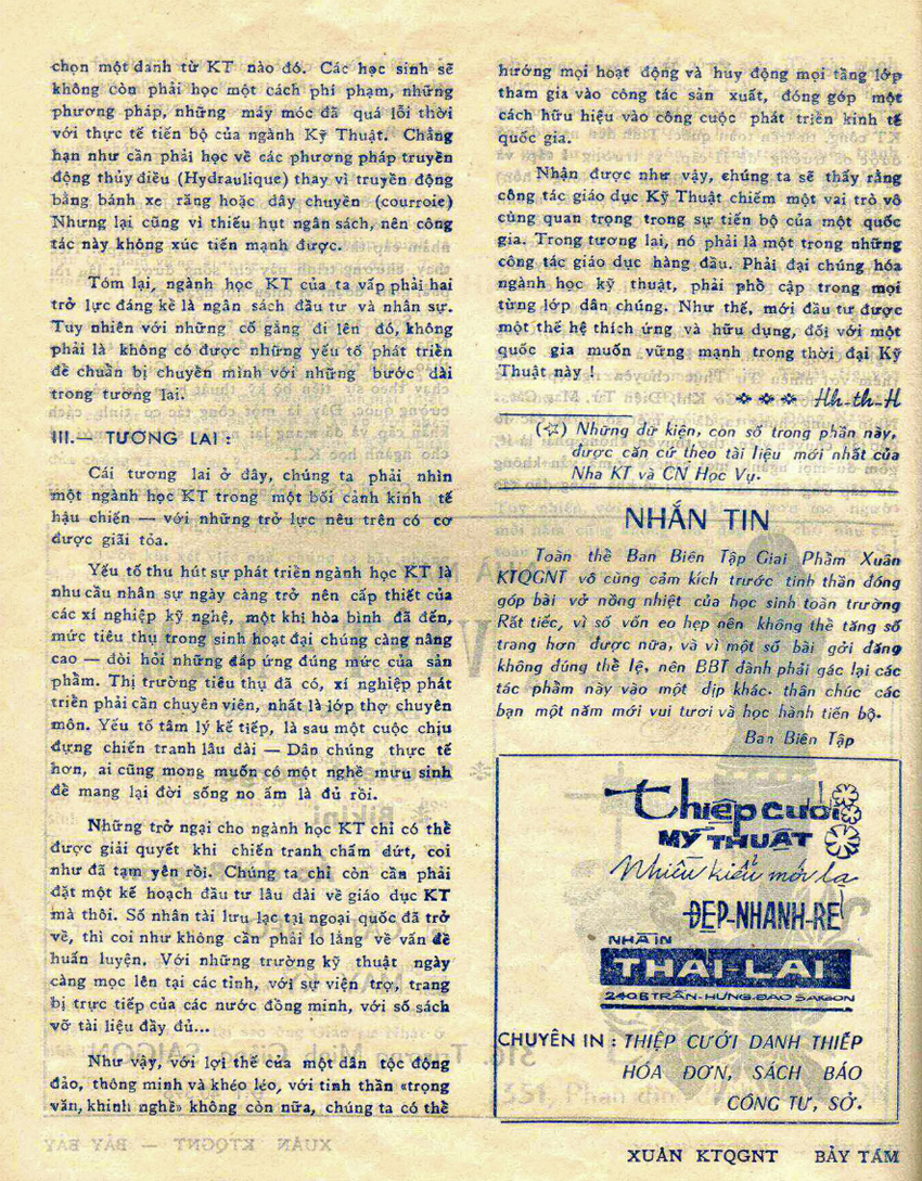 Trích Giai Phẩm Xuân Kỹ Thuật 1973: