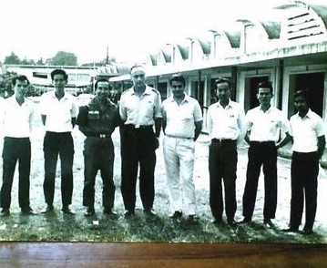 -Từ trái qua : Thày Đỗ Trọng Hoà trưởng xưởng Điện tử, Thầy Trần Khắc Lượng Tổng giám xưởng,Thầy Nguyễn Hàn Tý bộ Cựu Chiến Binh, hai nhân viên Toà Đại sứ Ý đại lợi, thầy hiệu trưởng Đặng Trần Dư, Thầy Đỗ Đại Thanh Vân giám học và Thầy Phan Tấn Chữ giáo sư điện tử.