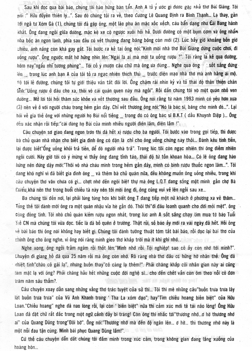 Bữa đó, tôi ở lại với anh – bên mâm rượu, cùng say sưa nhắc nhở những kỷ niệm thời học trường kỹ thuật. Giống như câu chuyện “ Mối tình Quốc văn giáo khoa thư “ của nhà văn Sơn Nam.