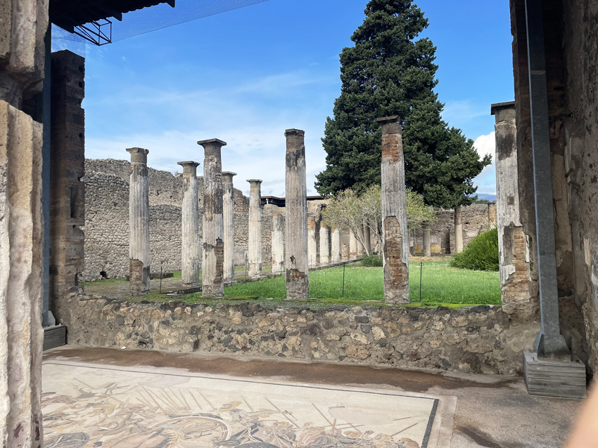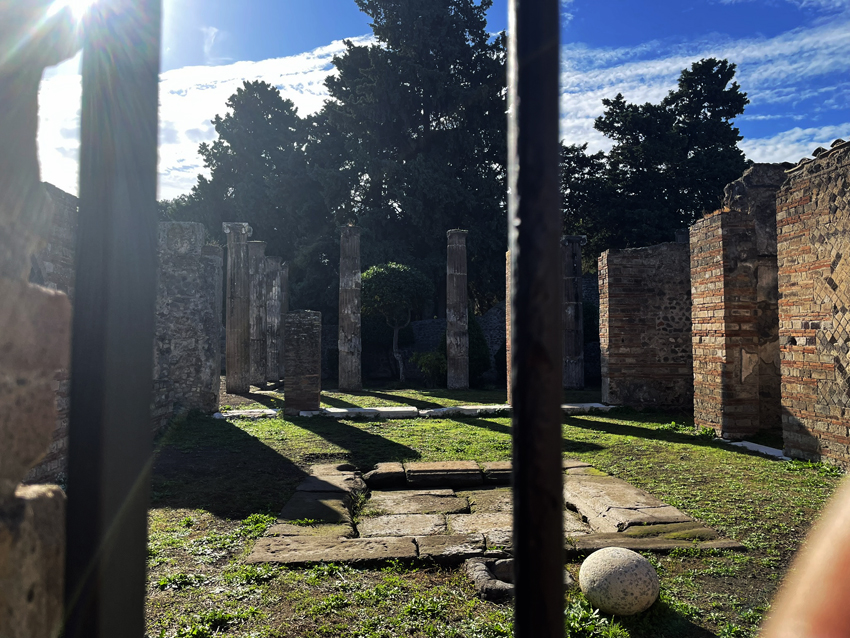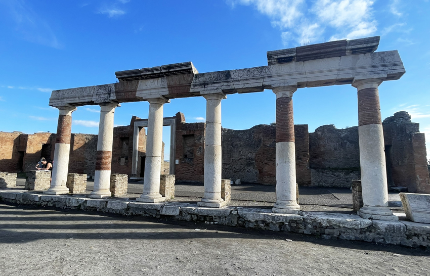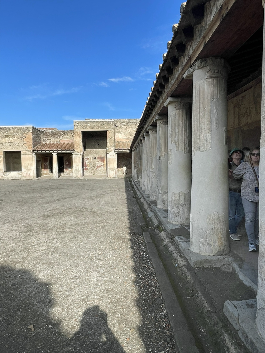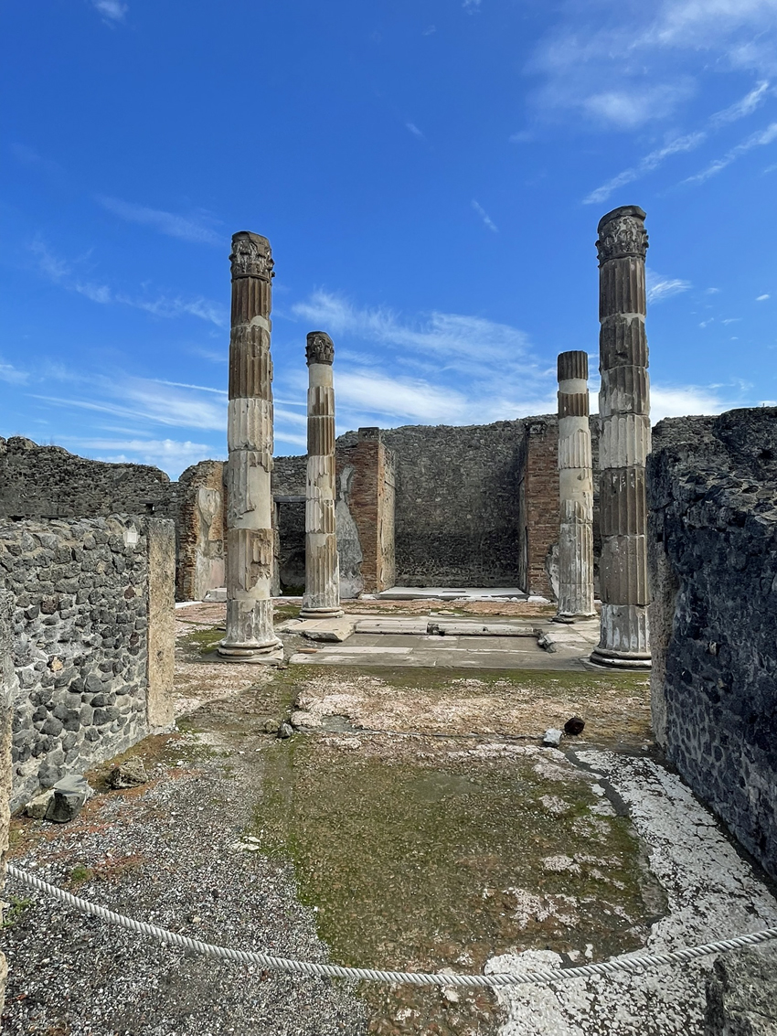 Các cột Doric bao quanh cung điện (sân tập thể dục) tại Nhà tắm Stabian