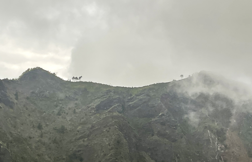 Một phần của miệng núi lửa. Không thấy hết nguyên miệng được vì bị chắn, miệng chỗ cao chỗ thấp.
