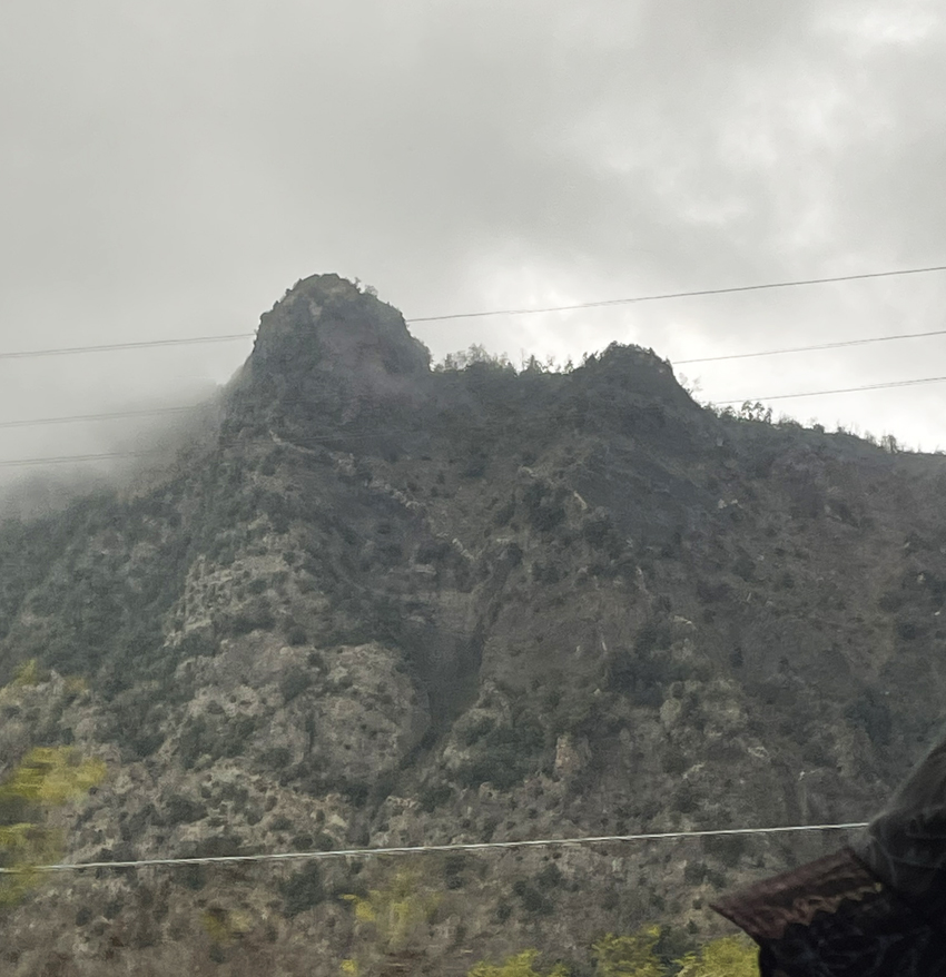 Các hình chụp từ trên xe bus chạy từ bãi đậu xe phía dưới đến đầu đoạn đường mòn cho du khách đi bộ lên núi. Đoạn đường mòn này được cho biết là dài khoảng 1 cây số rưỡi. Không xa lắm nhưng nhiều đoạn rất dốc.