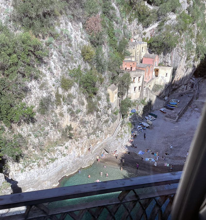 Fiordo di Furore (chụp từ trên cầu) là một bãi biển tuyệt đẹp được bao quanh bởi những vách đá cao nối liền với nhau bằng một cây cầu, tạo nên một địa điểm vô cùng đẹp như tranh vẽ. Nơi đây rất được ưa chuộng cho các du khách tắm biển và cho các tour du thuyền.