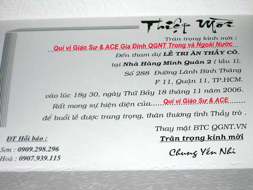 Ngày Tri Ân Thầy Cô và Hội Ngộ Bạn Hữu 18-11-2006 |