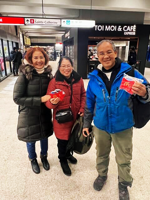 - Hôm thứ Bẩy vừa qua 3 Jan 25, nhóm thiện nguyện Les Perles đã đi phát hơn 100 cards MC Donald và Tim Horton trị giá 25$/card cho các Homeless tại các subways và ngoài đường phố Montreal.