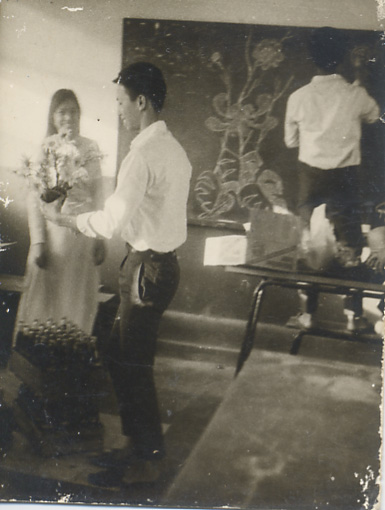 Từ trái sang phải: Thầy Thọ, Phụng, anh Thừa, thầy Sang, cô Chương (anh Nam đứng sau lưng cô Chương, cô Mai Dung, cô Hòa (anh Chương đứng sau lưng cô Hòa, Cô Kim Sơn, M. Phượng, anh Yến